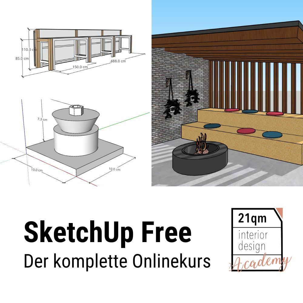 In diesem Onlinekurs lernst du alle Werkzeuge und Funktionen, die die kostenlose SketchUp Version (SketchUp Free) bietet!