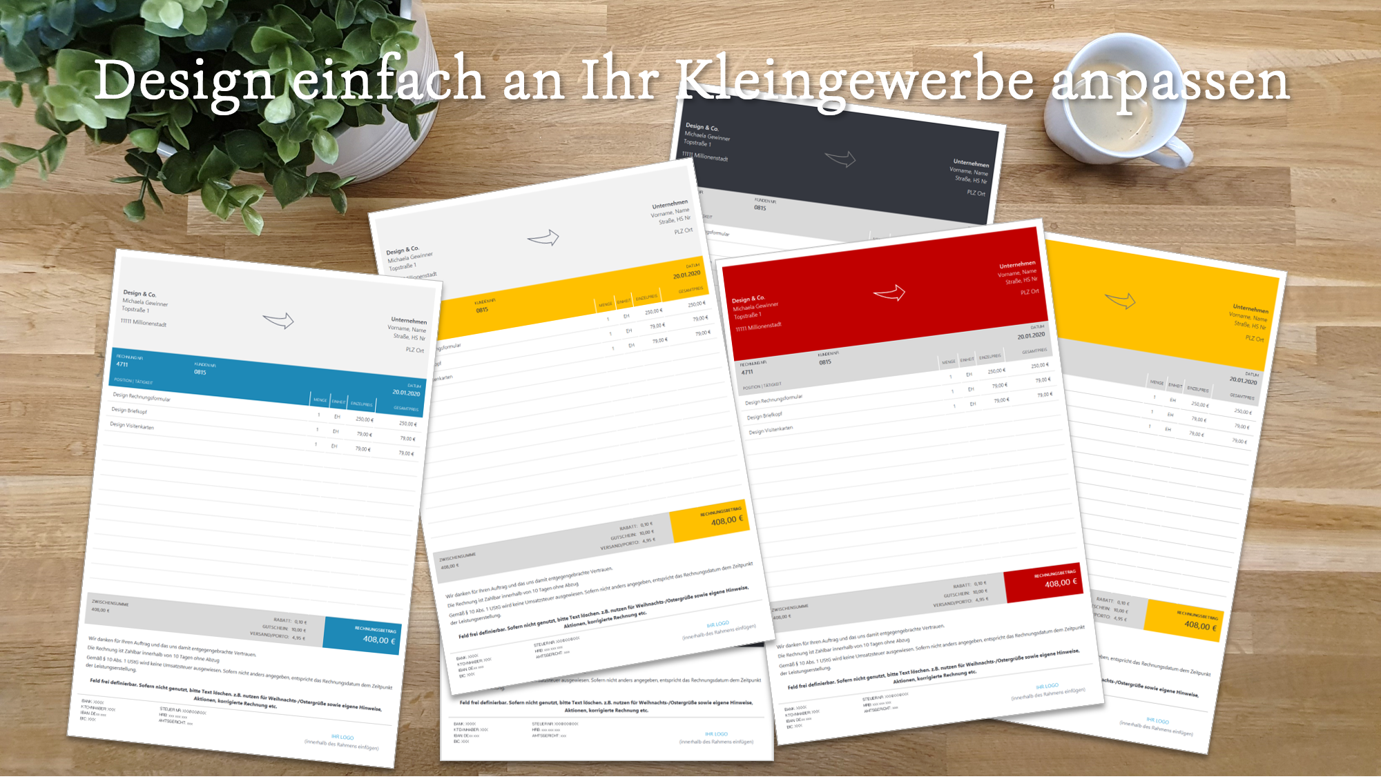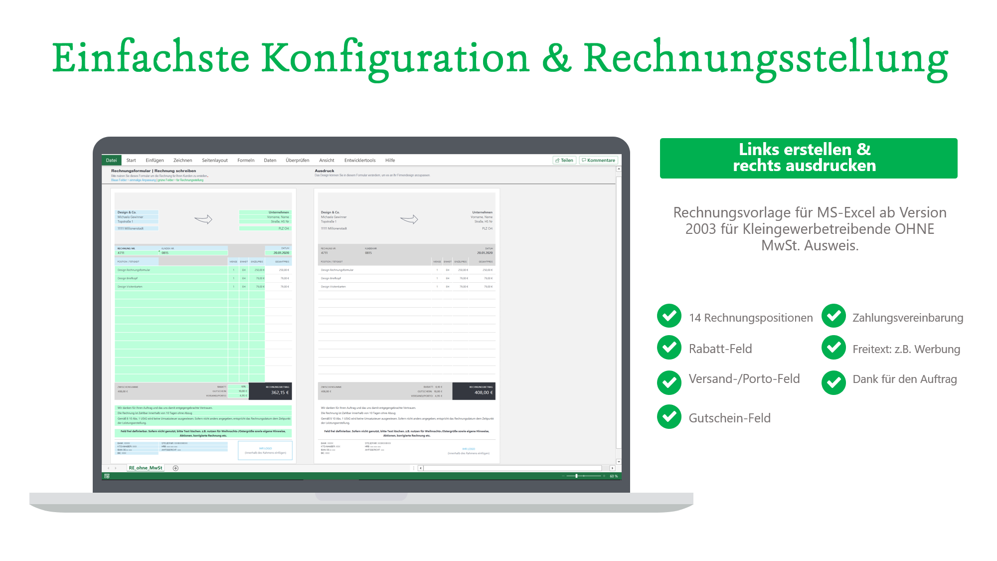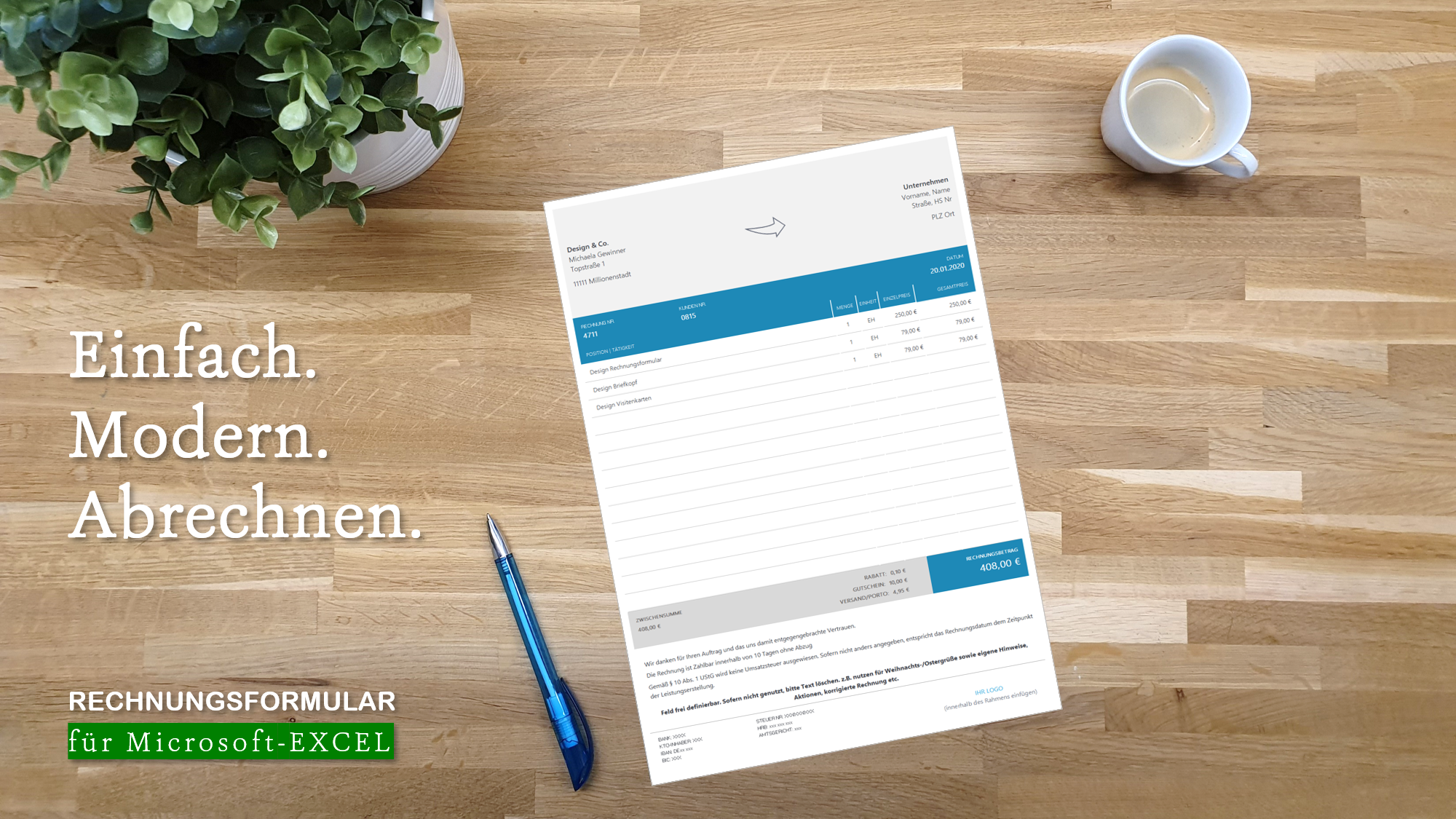 Modernes Rechnungsdesign zur Rechnungsstellung für Kleingewerbetreibende OHNE MwSt Ausweis auf der Rechnung