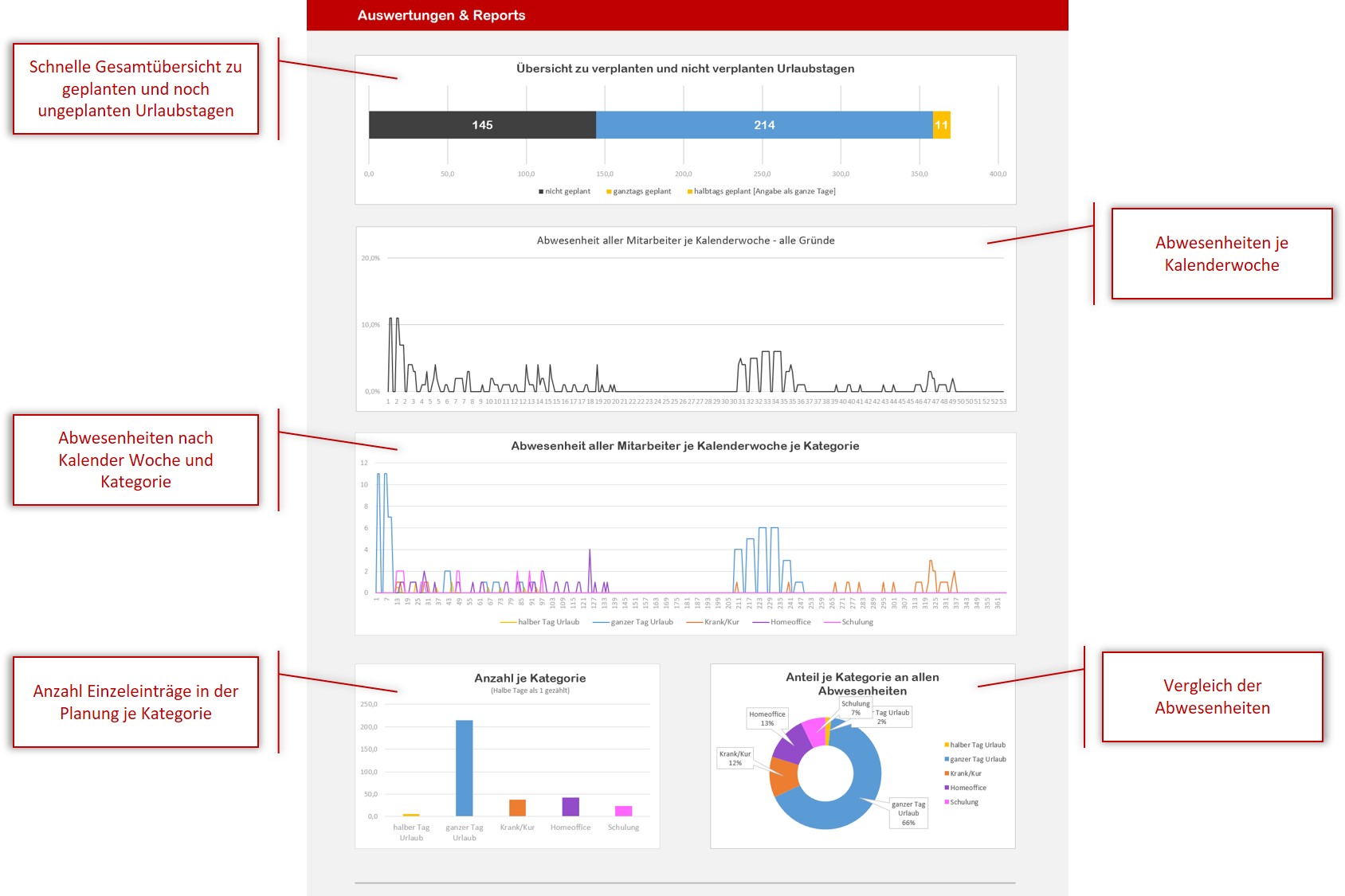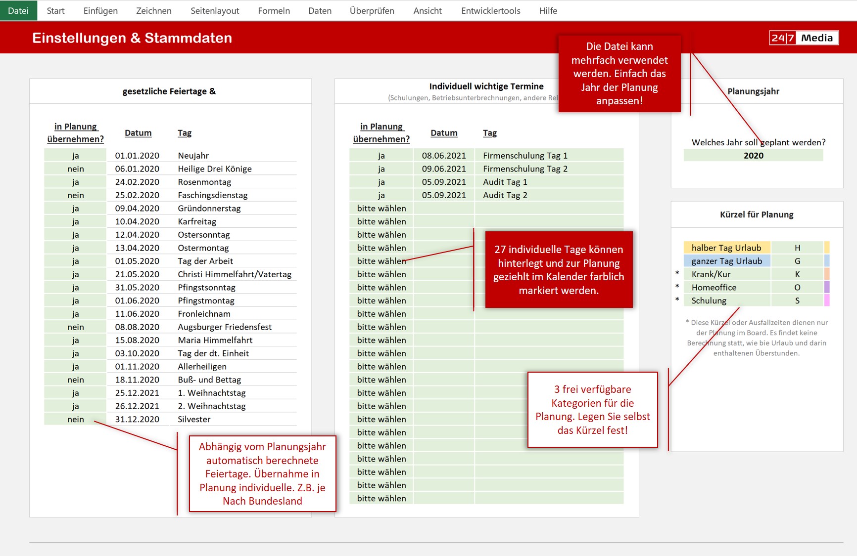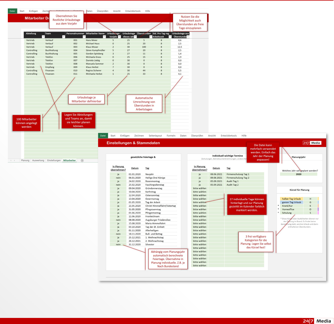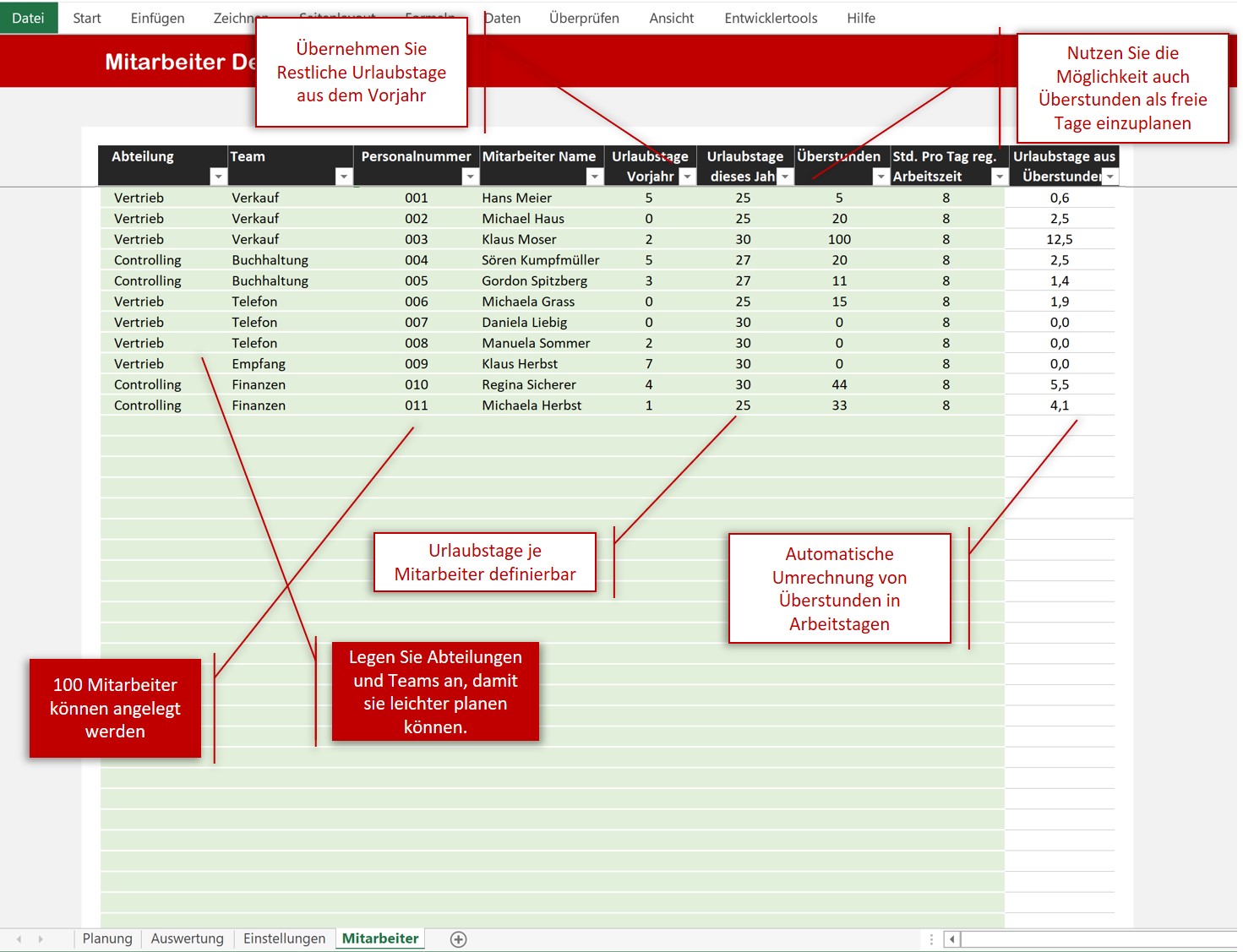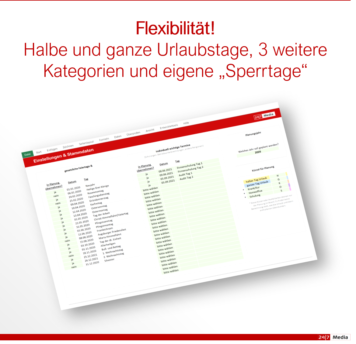 Urlaubs- und Anwesenheitsplaner für bis zu 100 Mitarbeiter - für viele Jahre verwendbar!