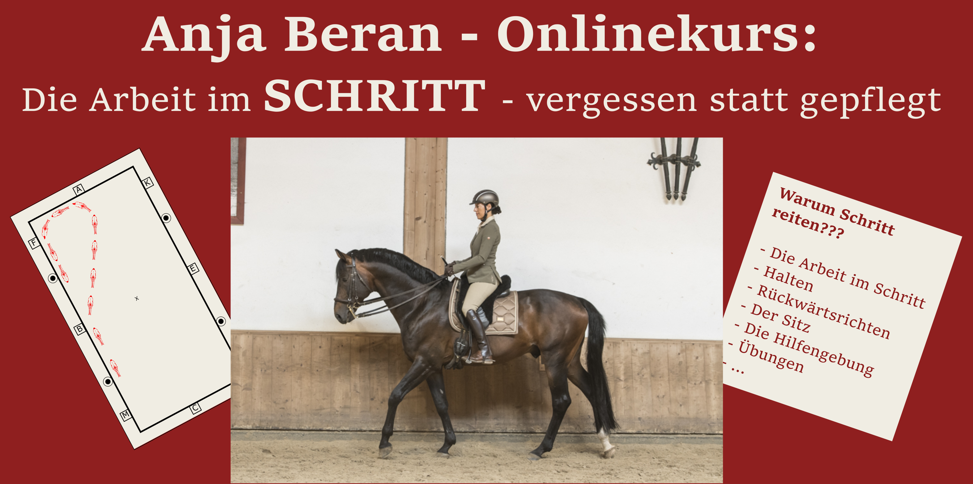 Der Schritt ist die ideale Gangart um unser Pferd auf höhere Ansprüche vorzubereiten! Die Arbeit im Schritt führt zu höchstem Feingefühl beim Reiter und fürs Pferd führt die Gymnastizierung im Schritt zu bester Koordination, Balance, Geschmeidigkeit und dem Lauschen auf die allmählich unsichtbare Körpersprache seines Reiters!