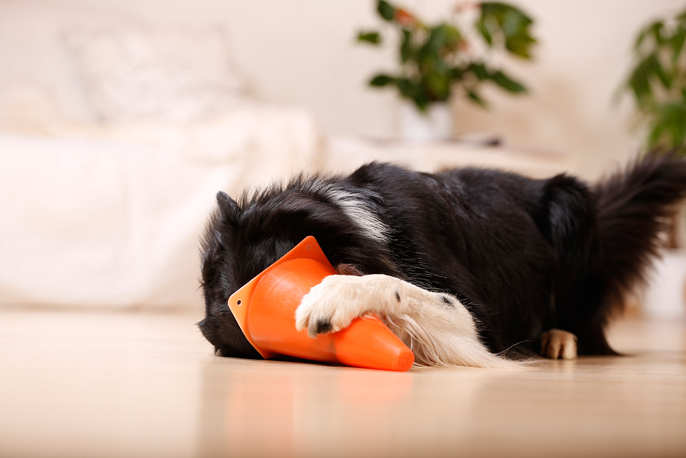 1.) eine Pylone mit der Pfote oder Nase umzuschmeißen