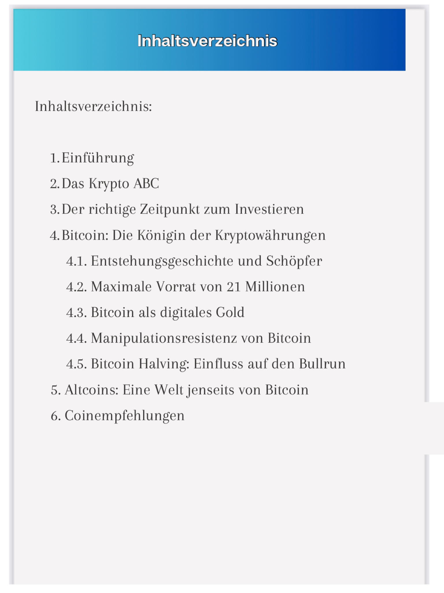 In diesem Ebook findest Du ein Basis Wissen über Kryptowährung. Warum man jetzt investieren sollte, was Bitcoin überhaupt ist, ein kleines Krypto - ABC und zwei Coins, die sich im nächsten Bullrun auf 5-15x entwickeln können.