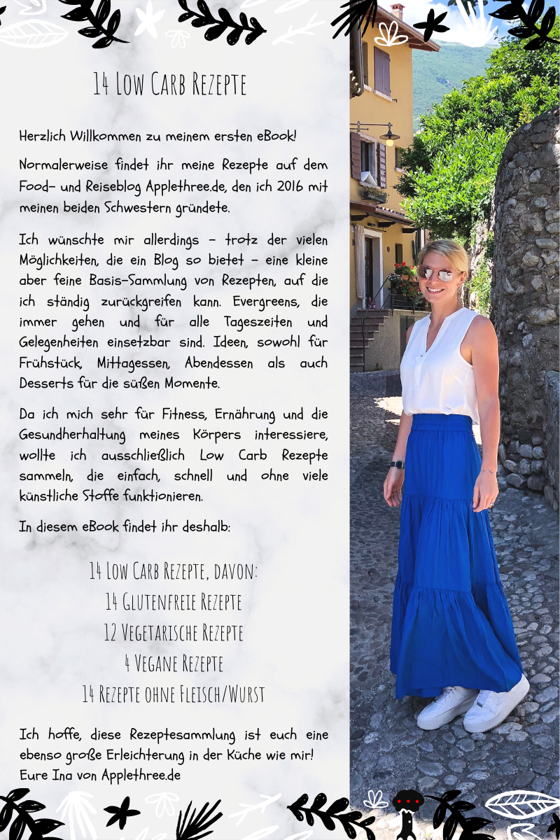 14 Low Carb Rezepte, die schnell und einfach zuzubereiten sind. Eine praktische Sammlung von Foodbloggerin Ina mit den beliebtesten Low Carb Rezepten ihres Blogs Applethree.de und vielen neuen exklusiven Low Carb Rezepten als praktisches eBook im PDF-Format auf 32 Seiten.