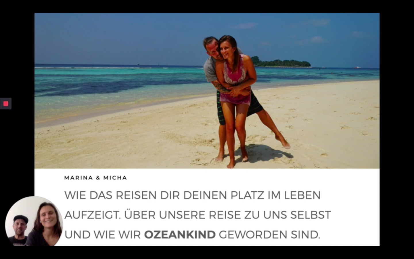 In unserem Online Vortrag nehmen wir dich mit auf unsere ganz persönliche Reise. Es geht darum wie Dir das Reisen Deinen Platz im Leben aufzeigen kann. Denn genau das ist uns passiert. Wir erzählen dir wie uns bestimmte Reisen unter anderem nach Afrika, Brasilien, Norwegen und auf die Malediven den Weg zu unserer heutigen Berufung gezeigt haben. Warum wir unser Leben im Deutschen Hamsterrad aufgegeben haben und heute eine internationale Umweltschutzorganisation führen. Wenn uns das Reisen in den letzten 10 Jahren eines gelehrt hat, dann dass man ruhig mit Mut auf die eigene Intuition hören darf. Das Leben hat meist etwas anderes mit Dir vor, wenn du dich voll darauf einlässt.
