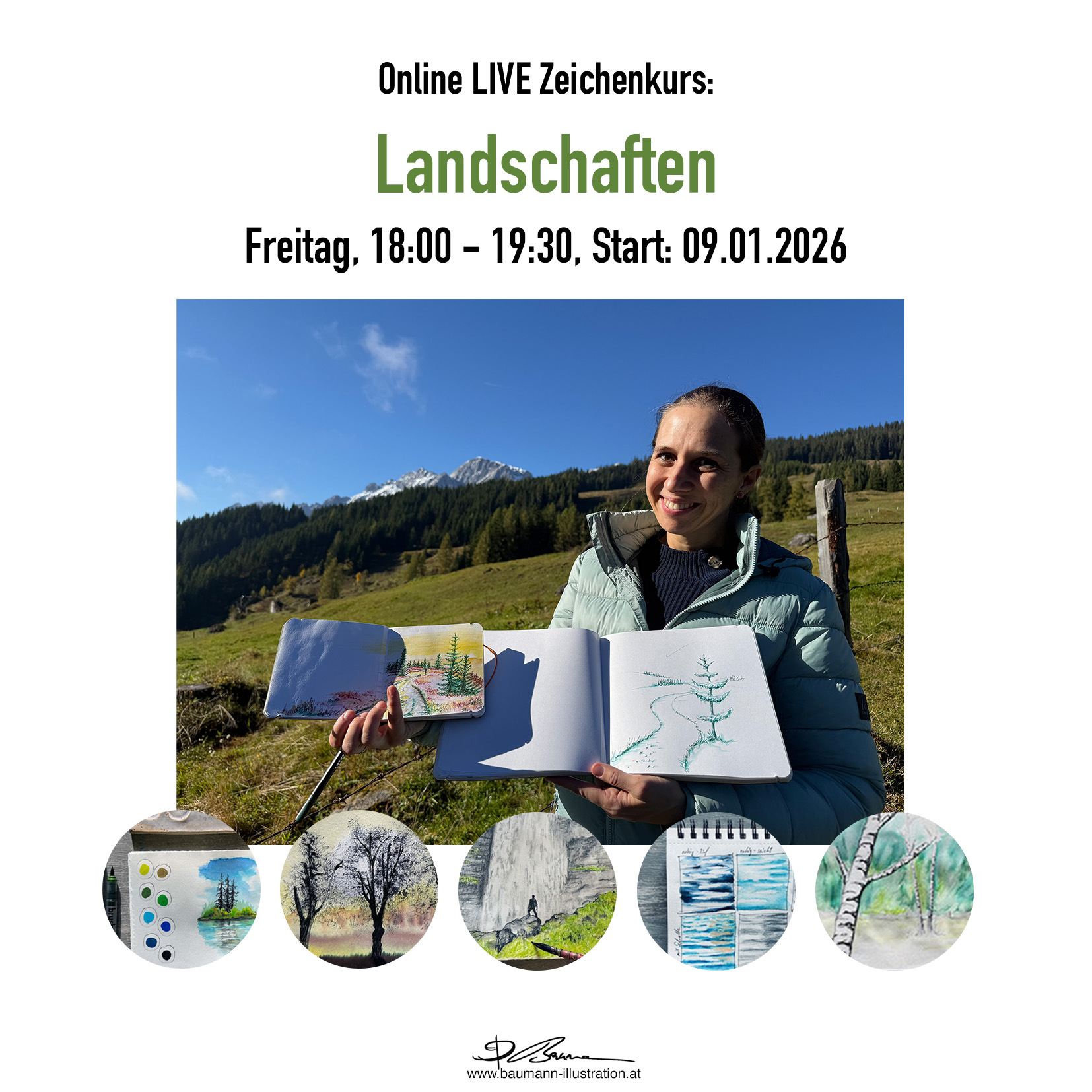 Der Kurs findet online via Zoom statt und wir zeichnen Schritt für Schritt gemeinsam. Dabei gibt es immer Gelegenheit für Fragen & Feedback.
