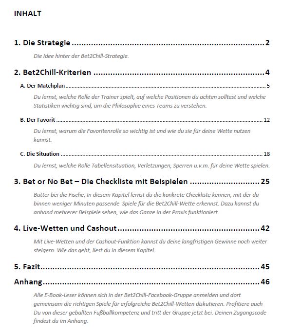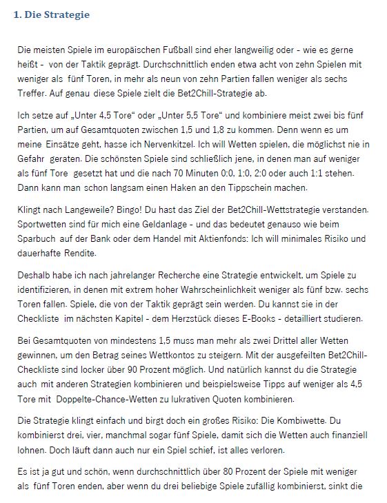 Um dauerhaft mit Sportwetten Geld zu verdienen, brauchst du eine Strategie, die zu dir passt. Ich habe über mehrere Jahre hinweg die Bet2Chill-Strategie entwickelt, die für mich herausragend funktioniert. Und vielleicht ja auch für dich?! Damit du sie ebenfalls nutzen kannst, habe ich meine Strategie in diesem E-Book detailliert beschrieben.