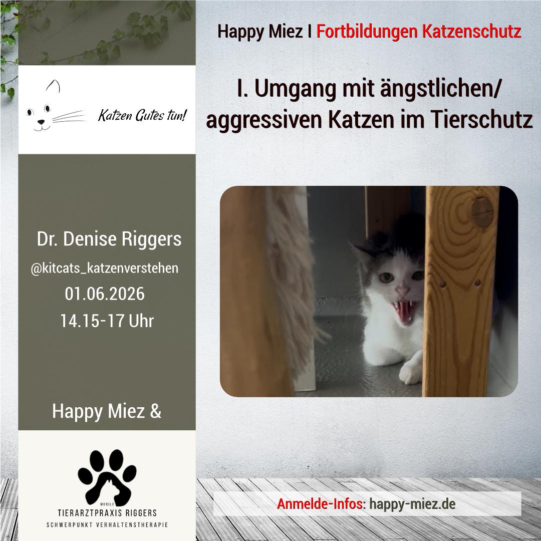 Happy Miez Fortbildung Katzenschutz mit Dr. Denise Riggersam Montag, 01.06.2026 von 14.15-17 Uhr