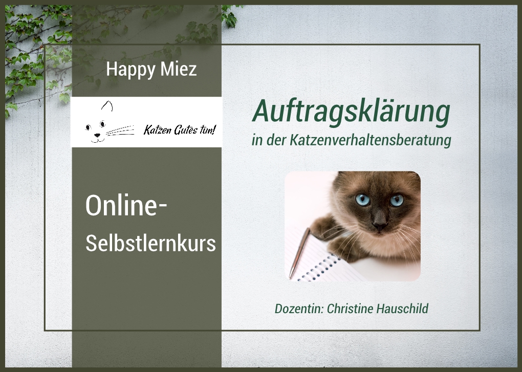Einen Online-Kurs zum Thema "Auftragsklärung in der Katzenverhaltensberatung", bestehend aus 4 Lektionen:
