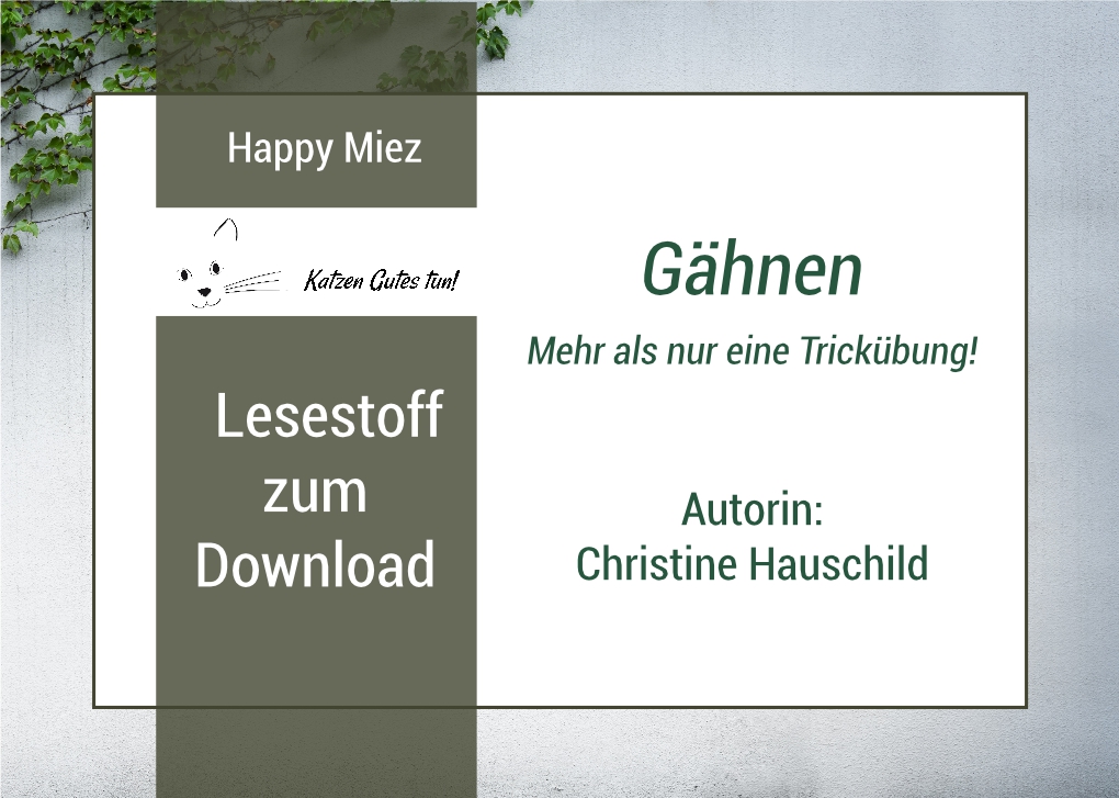 "Meine Katze soll auf Signal gähnen?!?" Ja! Vielen Katzen bereitet das Gähnen für eine kleine Belohnung ausgesprochen viel Spaß. Zudem ist das Gähnen ein Verhalten, das großen praktischen Nutzen entfalten kann: Es wirkt entspannend und ermöglicht die Kontrolle von Zähnen und Zahnfleisch ganz ohne Zwang.
