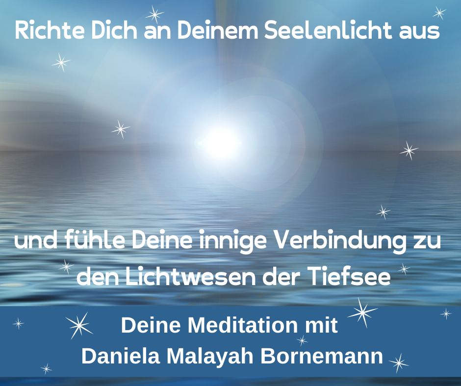 In dieser wunderschönen Meditation gehst Du in die Verbindung mit den Lichtwesen, die in der Tiefsee für uns wirken. Sie halten seit langer Zeit das Licht für uns alle auf der Erde. Nun geben sie sich zu erkennen und wir können mit ihnen in Kontakt gehen.