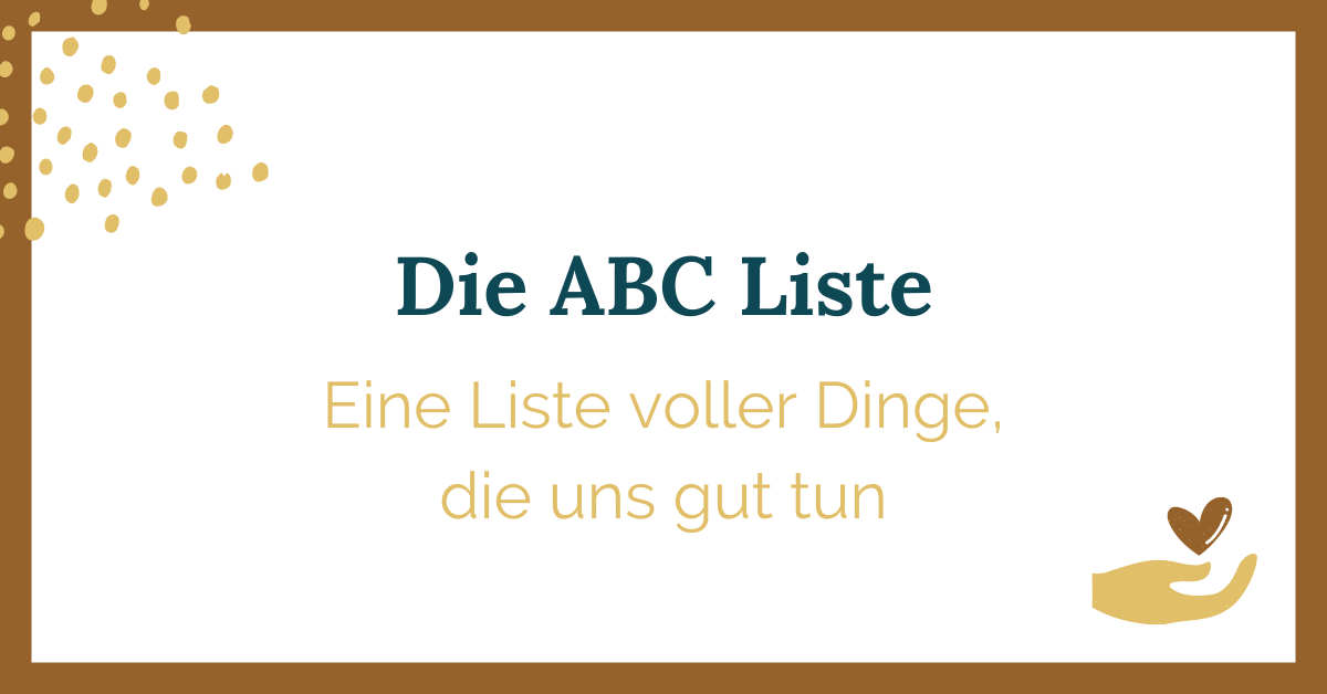 Die ABC-Liste. Eine Liste der Dinge, die uns gut tun. Vor allem Entspannung ist individuell, es gibt keine richtige oder falsche Methode. Jeder muss für sich herausfinden, wie oder womit er am besten entspannen kann - was ihm gut tut. Die aktuelle Zeit ist schwierig, man kann schnell in eine "Negativ-Spirale" hineingeraten. 80% unserer Stressreaktionen entstehen durch negative Gedanken. Die kreative Liste ist in einer wundervollen Gemeinschaftsaktion auf Instagram entstanden und soll als kleiner „Reminder“ dienen, vor allem in Situationen in denen wir mal wieder den Wald vor lauter Bäumen nicht sehen. Druckt die Liste aus, verteilt sie an Freunde, Verwandte und Kollegen – lasst uns gegenseitig unterstützen, damit wir gut durch diese herausfordernde Zeit kommen.