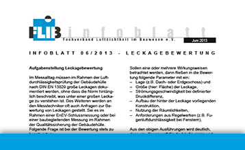 Das Infoblatt zeigt einen ersten Ansatz für die differenzierte Betrachtung von Leckagen (Bewertungsschema). Denn eine allgemeingültige Regel, um die Bedeutsamkeit einer Leckage in der Gebäudehülle zu bestimmen, gibt es nicht.