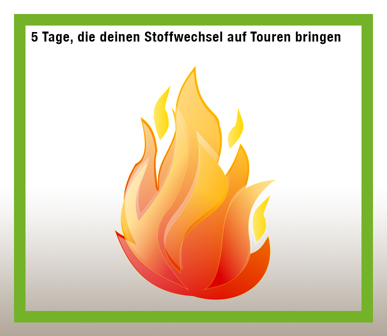An 5 Tagen zeige ich dir, wie du deinen Stoffwechsel so richtig auf Touren kriegst. Enthalten ist täglich ein kleines zu-Hause-Sportprogramm und mein Stoffwechsel-Turbo-Tipp des Tages.