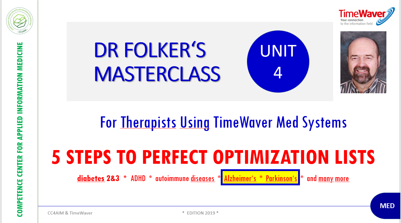 This unit is designed to assist you in creating perfect optimization lists for patients suffering from neurological diseases like Alzheimer's and Parkinson's