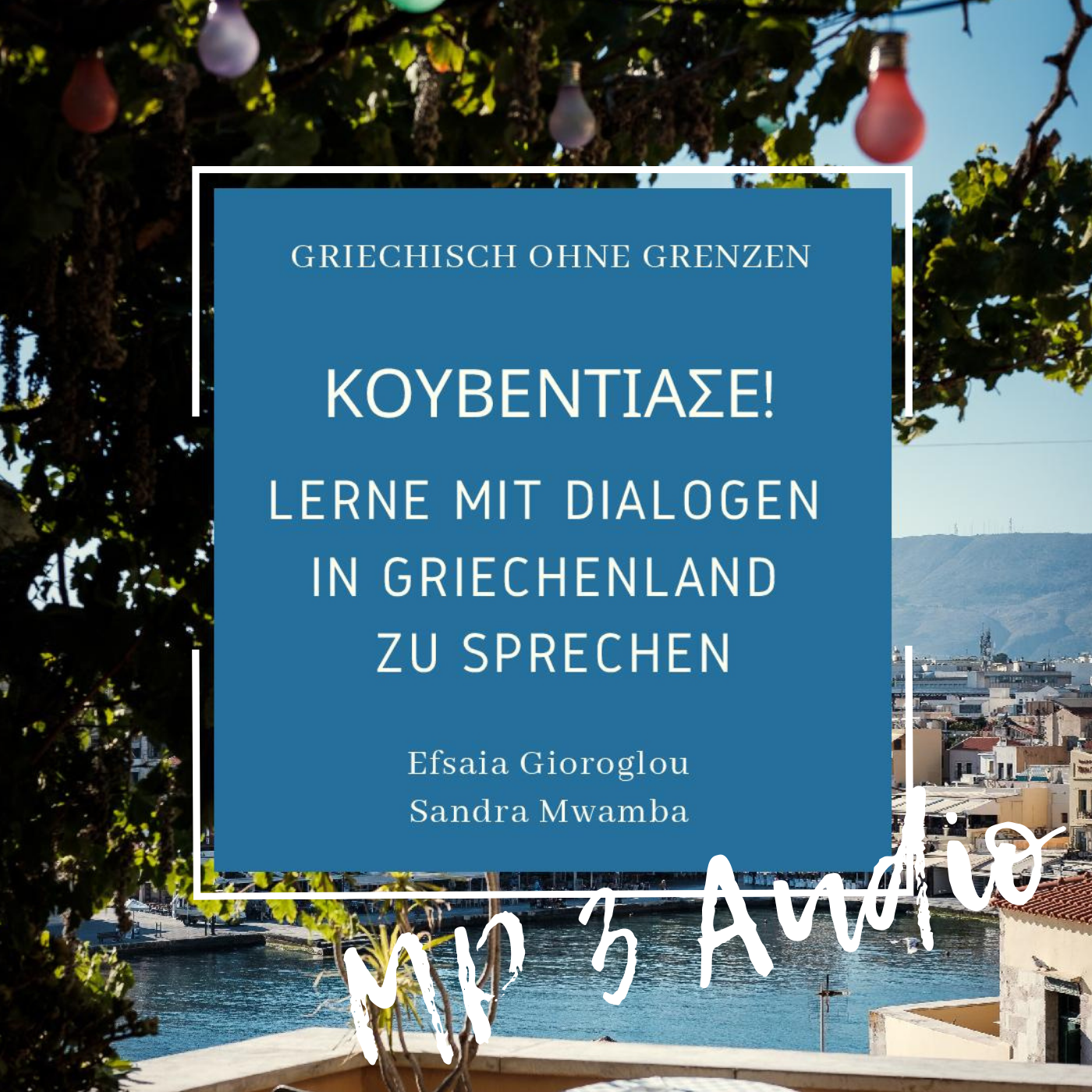 Alle Vokabeln aus den Listen und die schönsten Dialoge aus dem Buch „ΚΟΥΒΕΝΤΙΑΣΕ! – Lerne mit Dialogen in Griechenland zu sprechen“ als MP3. Die Audiodatei enthält insgesamt 29 der 48 Dialoge aus dem Buch und alle Vokabellisten. Gesamtspielzeit: rund 1,5 Std.