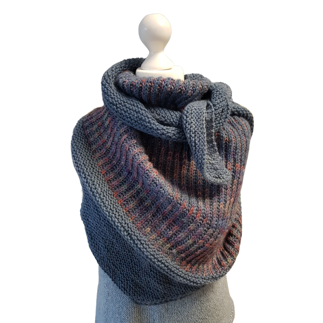 Du erhältst Strickanleitungen für verschiedene asymmetrische Tücher und natürlich für das asymmetrische Tuch im zweifarbigen Brioche-Muster.