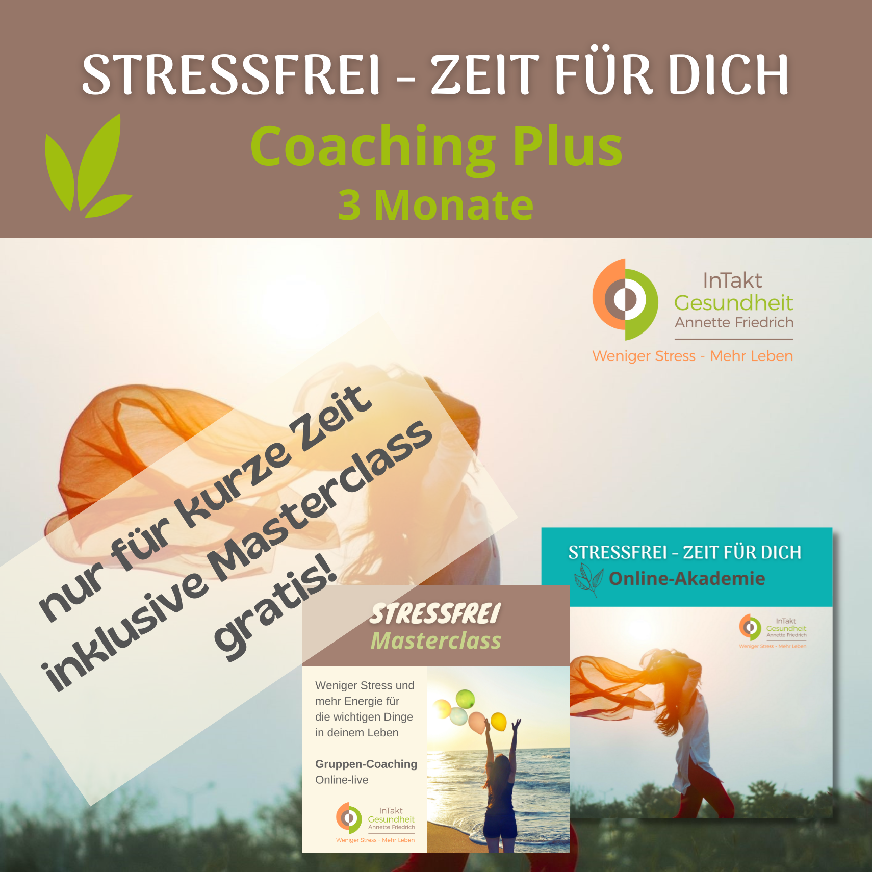 Achtung: Nur für kurze Zeit erhältst du die Stressfrei Masterclass für 6 Monate gratis dazu: