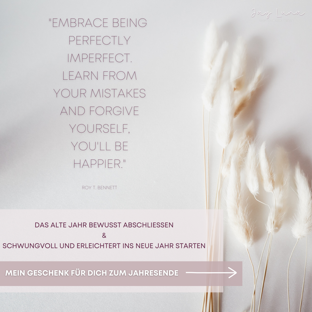 Oftmals scheitern wir sehr schnell an unseren gutgemeinten Neujahrs-Vorsätzen, weil wir das alte Jahr nicht bewusst zu einem Abschluss gebracht haben. Klarheit kann jedoch nur entstehen, wenn wir unsere Learnings und Erkenntnisse reflektieren. Erkennen, was gut war, um Dankbarkeit zu kultivieren. Loslassen von dem was uns blockiert und daran hindert, unser wahres Potenzial zu entfalten.