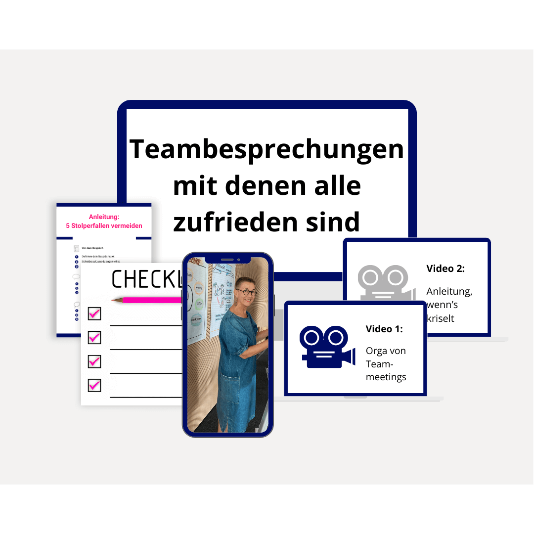 In meinem kurzen, knackigen Kurs mit der 6-Schritte-Strategie lernst du, wie du deine Meetings optimal strukturierst und schon vorab alle ins Boot holst.