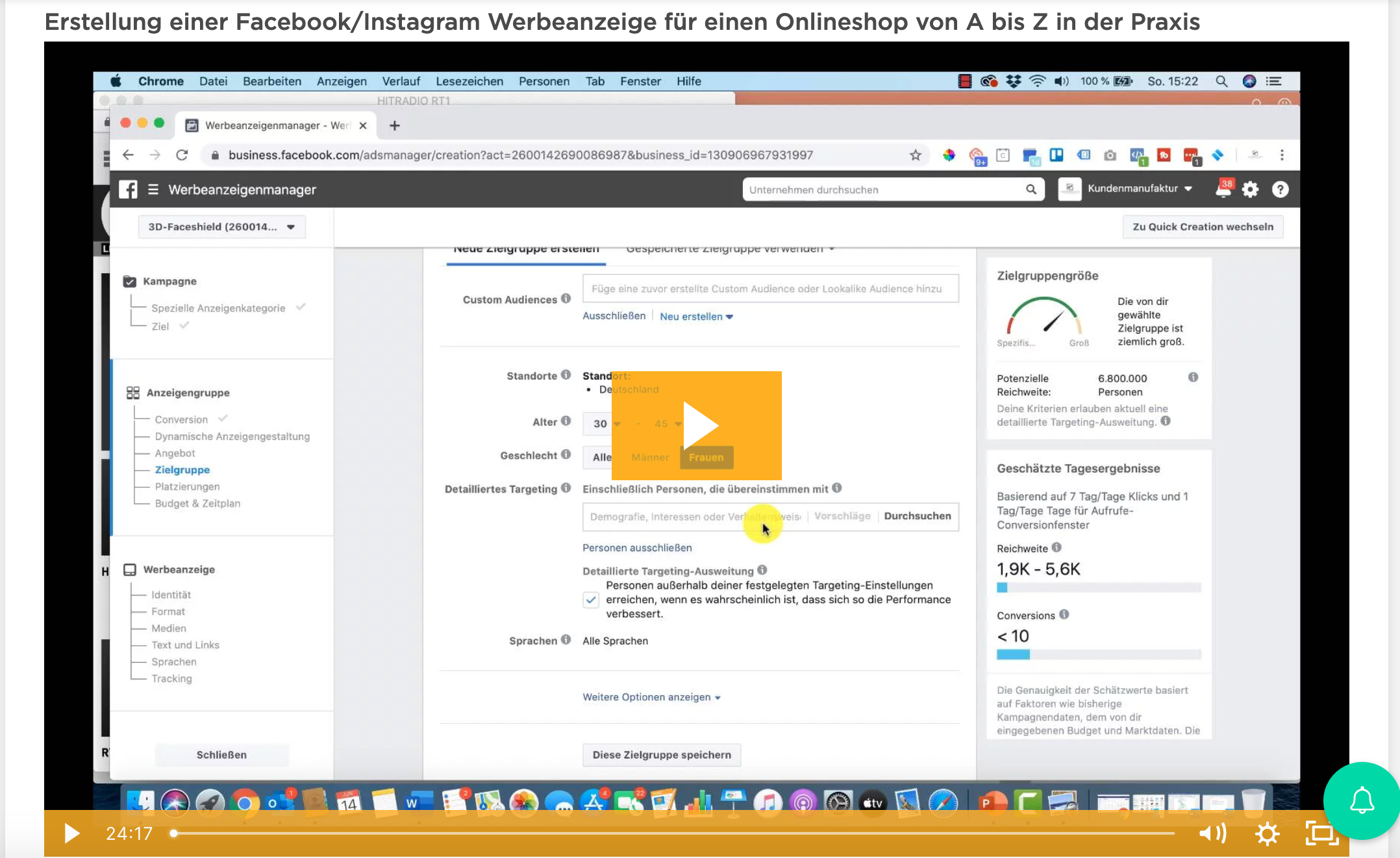 Erstellung einer Facebook/Instagram Werbeanzeige für einen Onlineshop von A bis Z in der Praxis