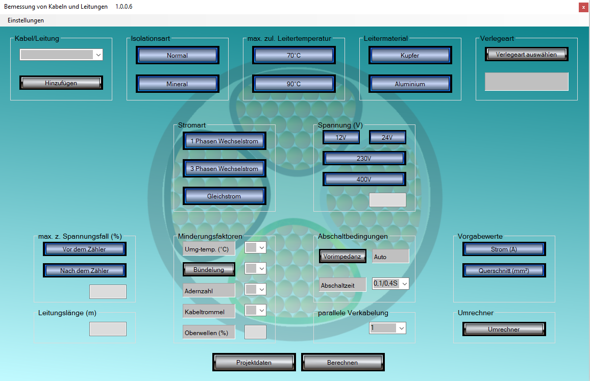 Mit dieser Software lassen sich die Querschnitte für normal- oder mineralisolierte Kabel und Leitungen in den Ausführungen Kupfer oder Aluminium ermitteln.