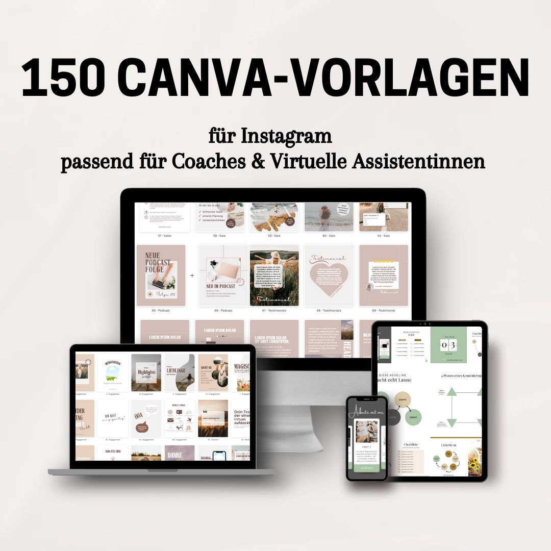 Das große Design-Vorlagen-Paket ist auf Coaches & Dienstleister:innen (wie z. B. Virtuelle Assistent:innen) zugeschnitten.