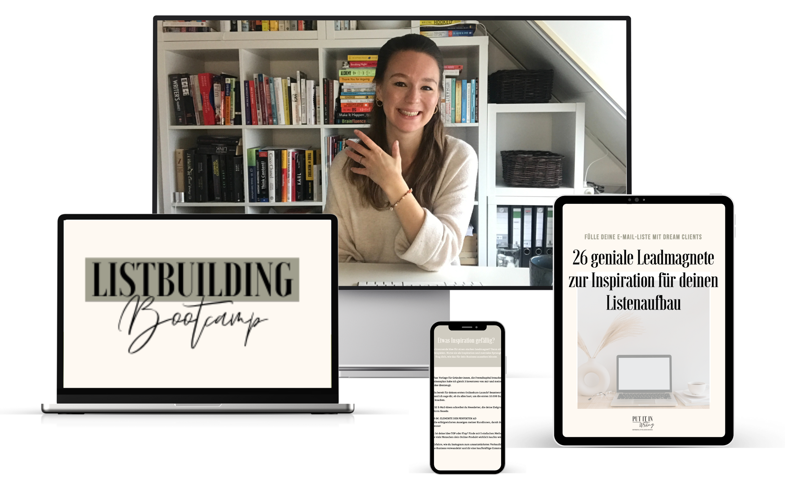 In 4 Wochen entwickelst du ein geiles Freebies, schreibst clickable Ads, eine starke Landingpage und E-Mails mit Suchtfaktor. Bau dir ein Publikum auf, das mit Begeisterung deine Coachings, Kurse oder Programme kauft.