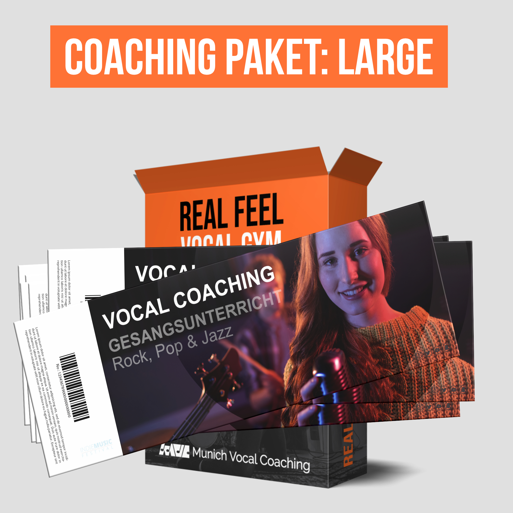 Unser beliebtes Prepaid Vocal Coaching bietet dir individuellen Gesangsunterricht ohne vertragliche Verpflichtungen. Für den optimalen Lernerfolg bekommst du Zugang zur Vollversion vom REAL FEEL VocalGym. Das sind Gesangsübungen mit Band Feeling für zu Hause, im Auto und unterwegs. Die bewährte Ergänzung zum Gesangsunterricht beim Munich Vocal Coaching.