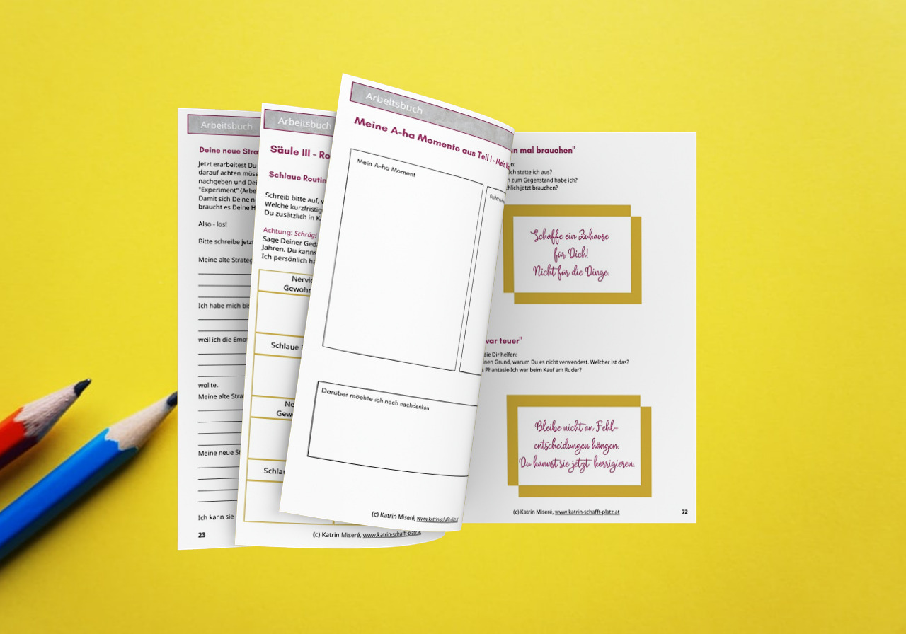 In meinem 77-seitigen Arbeitsbuch bekommst Du für alle Schritte Übungen und Vorlagen zum Ausdrucken.