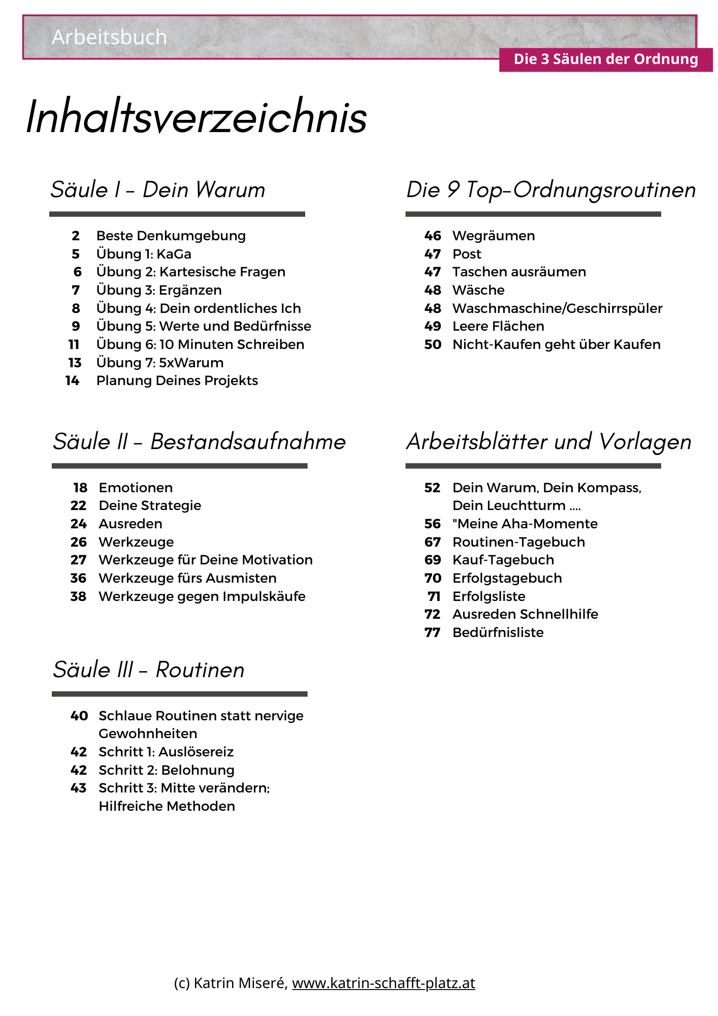 In meinem Ratgeber findest Du alles, um Deinen positiven Weg für Deine Wohlfühlordnung zu gehen.