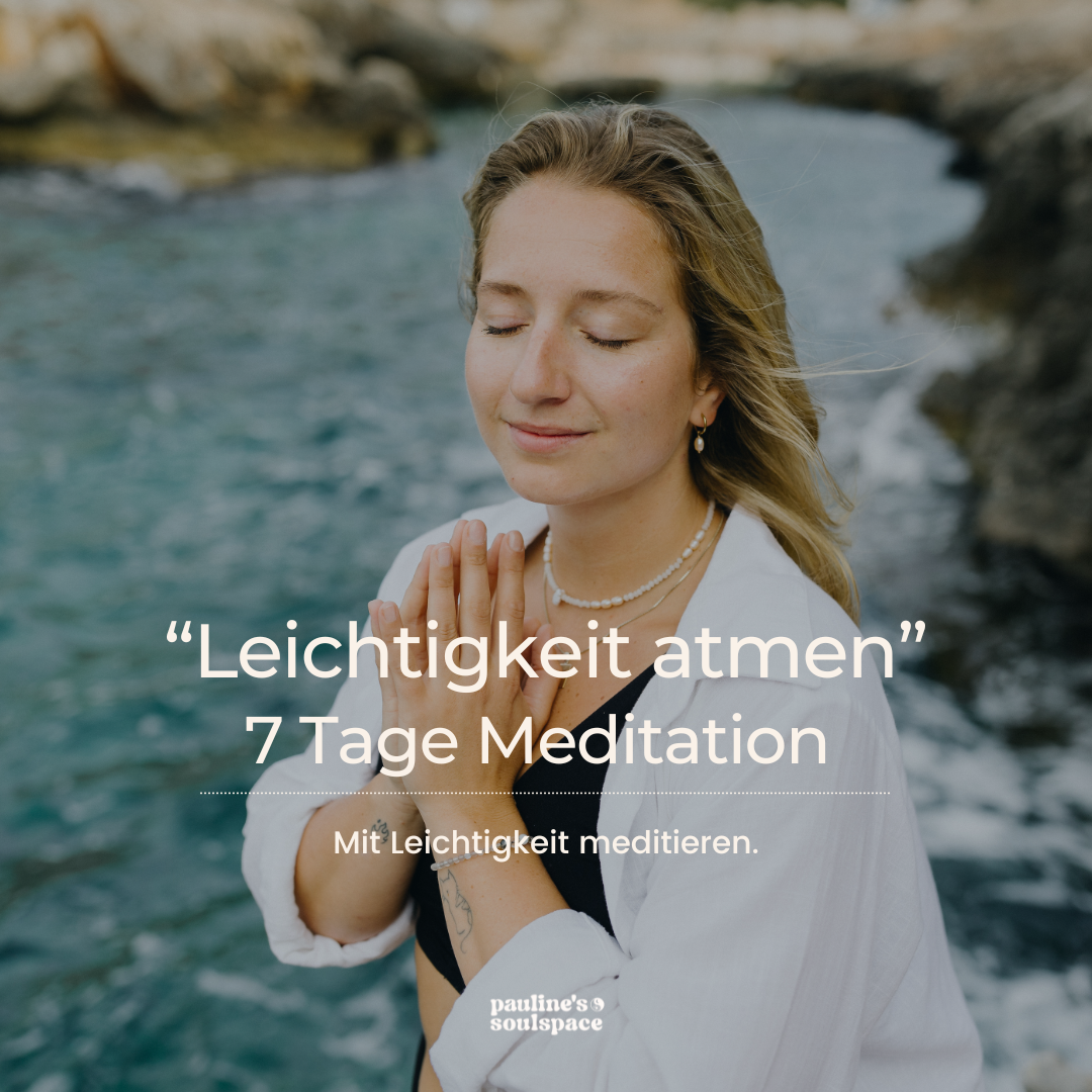Meditation darf dir Erholung, Ruhe, Freude und vorallem Leichtigkeit schenken. Dabei geht es darum, dir Raum zu nehmen, um dich und alles, was gerade zu dir gehört, willkommen zu heißen. Dieser 7-tägige Meditationskurs zeigt dir, wie leicht sich Meditation anfühlen darf.