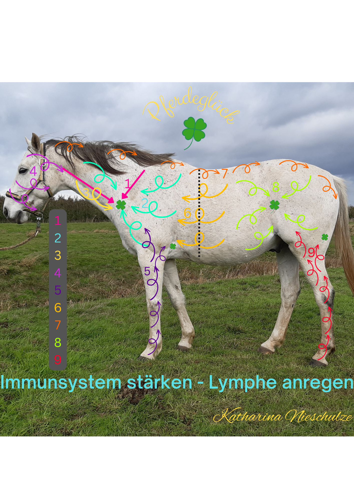 ich freue mich sehr, euch hier das nächste Selbsthilfetool für unser Pferdeglück entstanden ist und ich es euch zur Verfügung stellen kann. Ihr bekommt hier ein zweiseitiges Handout, eine einseitige Übersicht als Grafik um die Reihenfolge am Pferd einfach nachschauen zu können und natürlich ein grandioses Lehrvideo für die Praxis.