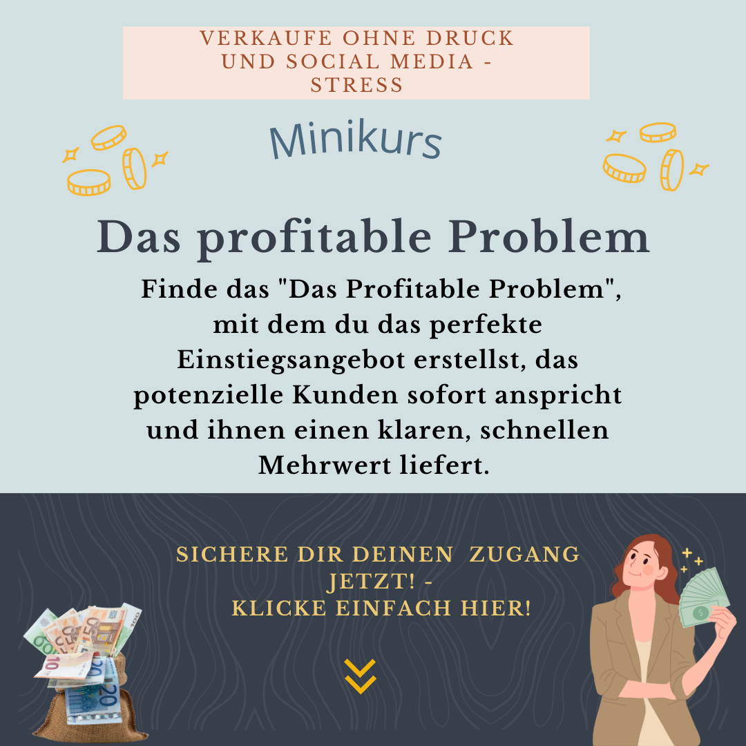 Finde das Problem, das für deine Idealen Kunden relevant ist und mache daraus ein "Vertrauensangebot"."Das Profitable Problem" ist ein strategischer Ansatz, mit dem du das Problem findest, das sich am besten für dein perfektes Einstiegsangebot eignet.