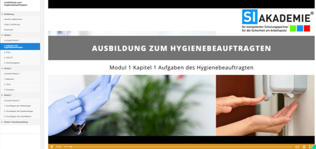 Unser Onlineseminar Ausbildung zum Hygienebeauftragten besteht aus 4 Modulen mit insgesamt 10 Lernvideos, mit denen Sie sich zum Hygienebeauftragten im Gesundheitswesen weiterqualifizieren können. Zusätzlich erhalten Sie ein Skript mit vielen Notizmöglichkeiten, sowie vielen Informationen. Aufgrund der Aktualität erhalten Sie einen Exkurs zum Thema Corona.