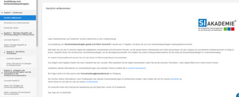 In 15 Kapiteln mit 15 Lernvideos, einem großen Skript mit vielen Notizmöglichkeiten und sehr vielen zusätzlichen Informationen kann jeder Mitarbeiter im Unternehmen die Ausbildung zum Sicherheitsbeauftragten entspannt am Computer machen. Der Dozent des Onlineseminars steht den Teilnehmern für Fragen per Email zur Verfügung.