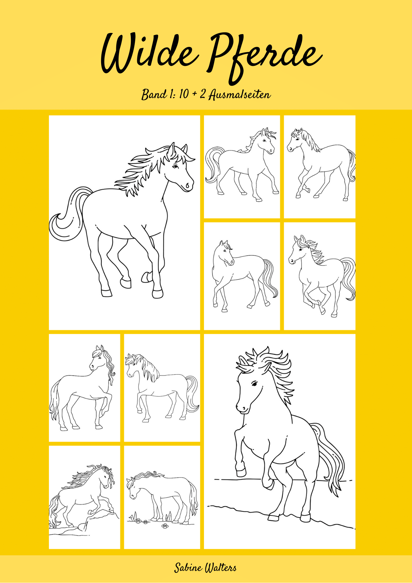 10 Ausmalbilder im Format 21 x 29,70 cm (DIN A4) mit jeweils einem der auf dem Cover gezeigten Motive