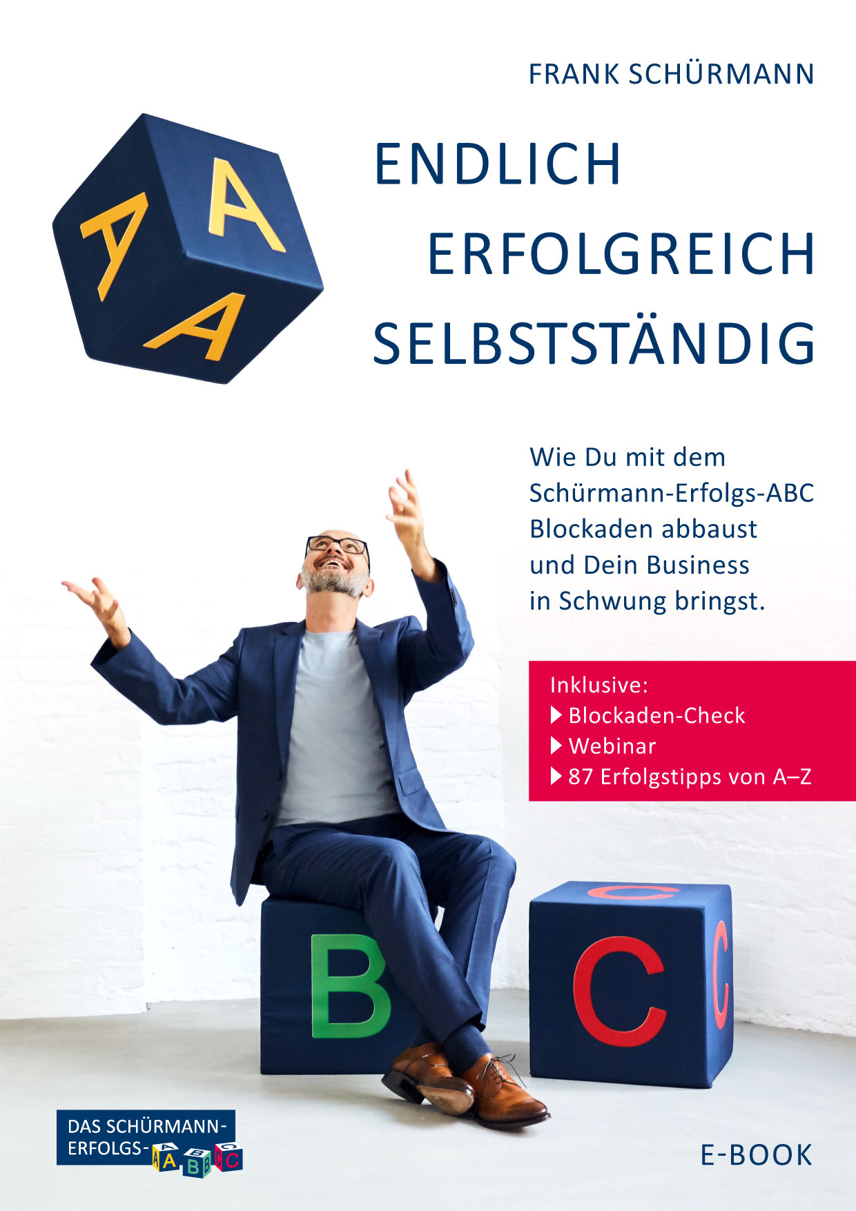 Wie würde es sich für Dich anfühlen, wenn Du gelassen und mit Zuversicht in die Zukunft blicken könntest? Nur wenn Du Deine versteckten Erfolgsblockaden kennst und löst gelingt es Dir, langfristig ein nachhaltiges Business aufzubauen, das Dich wirklich glücklich machen kann. Dabei möchte ich Dir mit meinem eBook "Das Schürmann-Erfolgs-ABC - Endlich erfolgreich selbstständig" helfen!