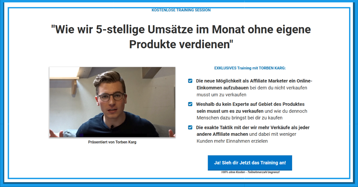 In diesem Beispiel wird ein kostenfreies Training angeboten - Die neue Möglichkeit als Affiliate Marketer ein Online-Einkommen aufzubauen