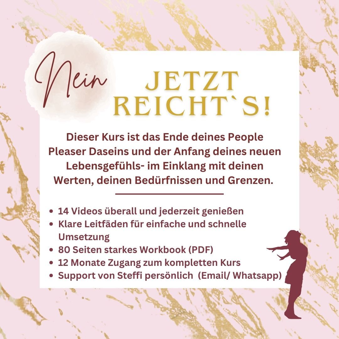 Herzlich willkommen am Ende deines People Pleaser Daseins und am Anfang deines neuen Lebensgefühls, denn wenn du diesen Kurs in dein Leben holst, dann wirst du endlich deiner Seele deinen Gefühlen und deinen Grenzen anfangen Aufmerksamkeit und Vertrauen zu schenken statt wie eine Marionette völlig automatisch immer das tun, was andere von dir erwarten.