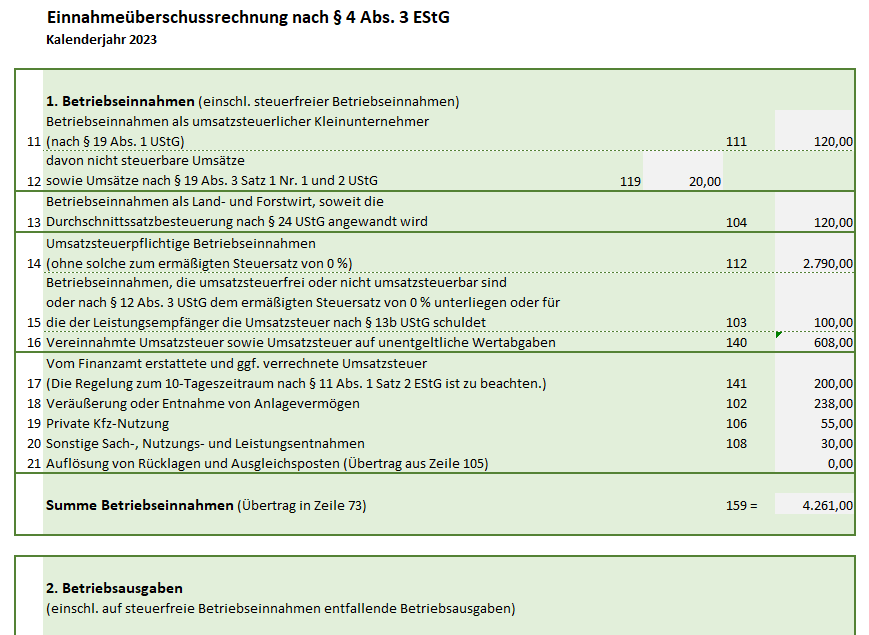 Unsere Excel-Vorlage für Buchführung und Einnahmenüberschussrechnung (Anlage EÜR) bietet Freiberuflern, Kleinunternehmern eine einfache, schnelle und kostengünstige Lösung zur Optimierung ihrer Buchhaltung. Entwickelt auf Basis umfangreicher Buchhaltungsexpertise, erfüllt diese Vorlage unterstützt sowohl die doppelte Buchführung als auch die EÜR, ideal für umsatzsteuerbefreite sowie umsatzsteuerpflichtige Unternehmen. Mit Anlagenverwaltung und Anlage AVEÜR.