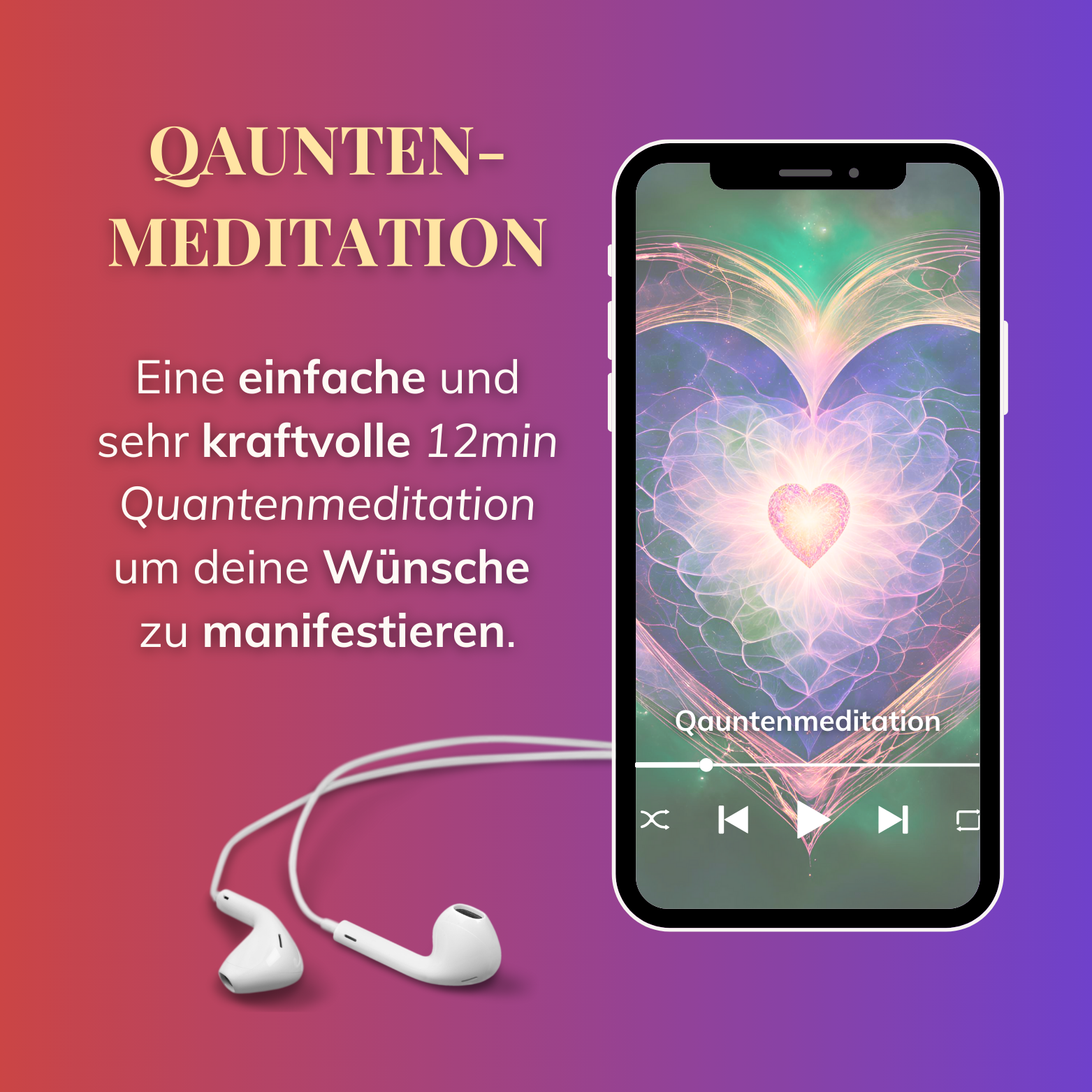 Entdecke die transformative Kraft der 12-minütigen Quantenmeditation, die speziell darauf ausgerichtet ist, deine tiefsten Wünsche zu manifestieren. Tauche in das Quantenfeld ein, einen Raum unendlicher Möglichkeiten, und visualisiere deine spezifischen Ziele. Durch wiederholtes Eintauchen in dieses Feld und das intensive Erleben deines Wunsches im Körper verstärkst du die Energie und Manifestation.
