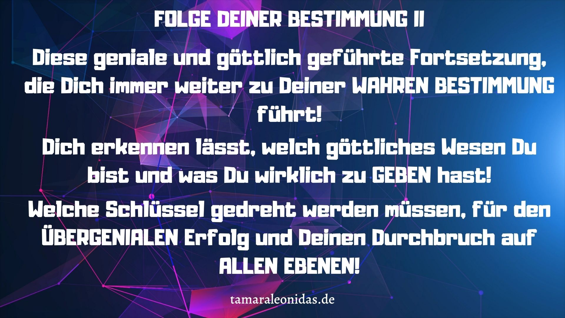 FOLGE DEINER BESTIMMUNG II IST DIE GENIAL GÖTTLICHE FORTSETZUNG VON FOLGE DEINER BESTIMMUNG