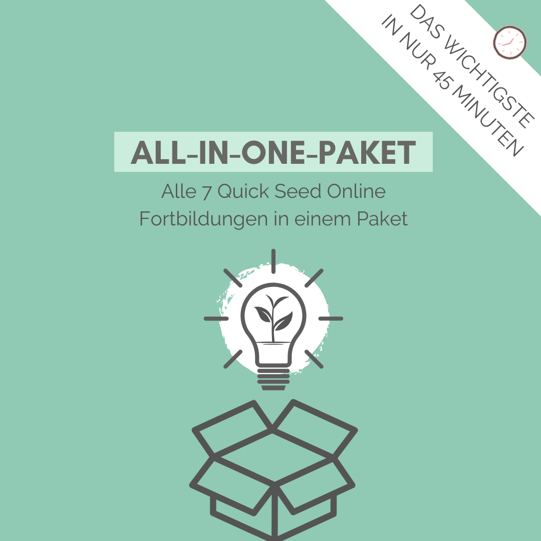 💡🌱Quick Seed Online Fortbildung: In diesen Fortbildungen bekommst du das Wichtigste zu einem Thema in 45 Minuten vermittelt. Kein Geschwafel, keine Zeitverschwendung!