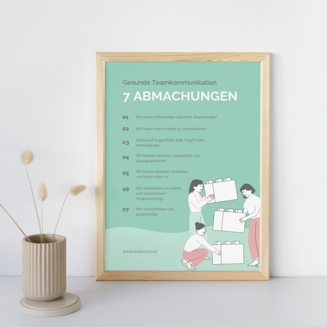 Ein liebevoll gestaltetes Freebie mit 7 alltagstauglichen Abmachungen, die jedes Team stärken – ob im Büro, remote oder hybrid.