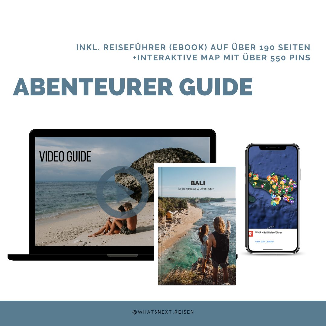Bali Abenteurer Guide (20 Videos / +80 Min. Video Material)Du planst gerade deine Bali Reise und möchtest nichts verpassen, dann bist du in diesem Kurs hier genau richtig. Wir waren schon unendlich oft auf Bali, haben gefühlt die ganze Insel gesehen und wissen welche Orte sehenswert sind und welche eben nicht.