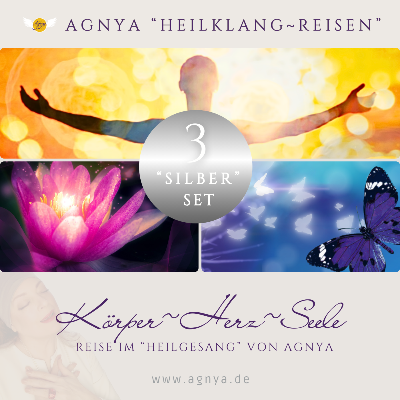 SILBER~SET "KÖRPER | HERZ | SEELE" mit 3 "HEILKLANG~ REISEN" Music Downloads | mp3 (329 kBit) | Time: 45 Min je Musik | Total: 135 Min.