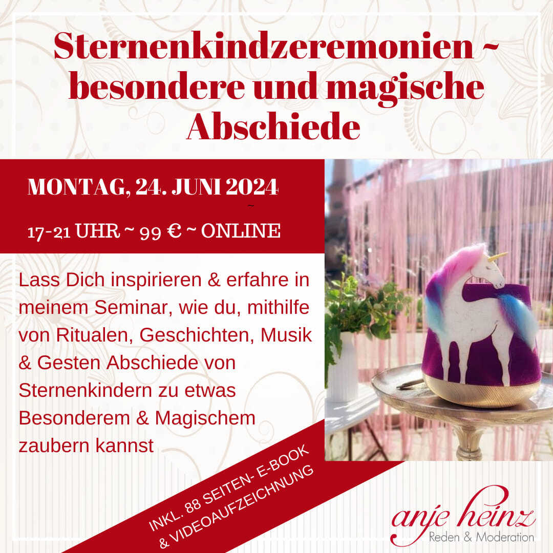 Ich freue mich darauf, euch in meinem Kurs "Sternenkindzeremonien - besondere und magische Abschiede" zu begleiten und gemeinsam mit euch diese besondere Art der Redekunst zu entdecken.