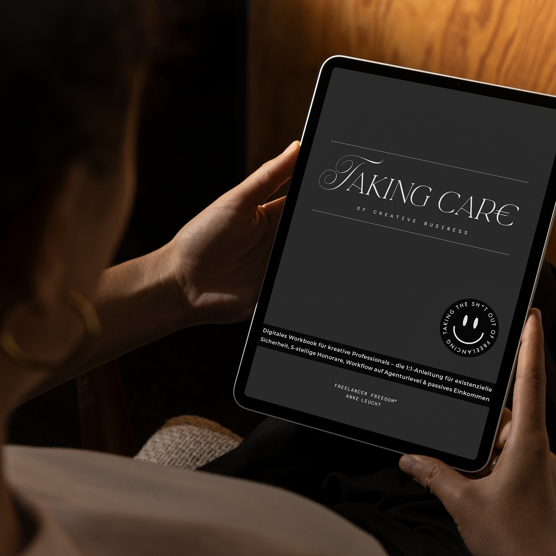Taking Care of Creative Business by Freelancer Freedom® ist die ganzheitliche Copy-Paste-Anleitung für soloselbstständige Art Direktorinnen, Grafik- und Webdesignerinnen, die solo bleiben und zukunftssicher skalieren wollen.