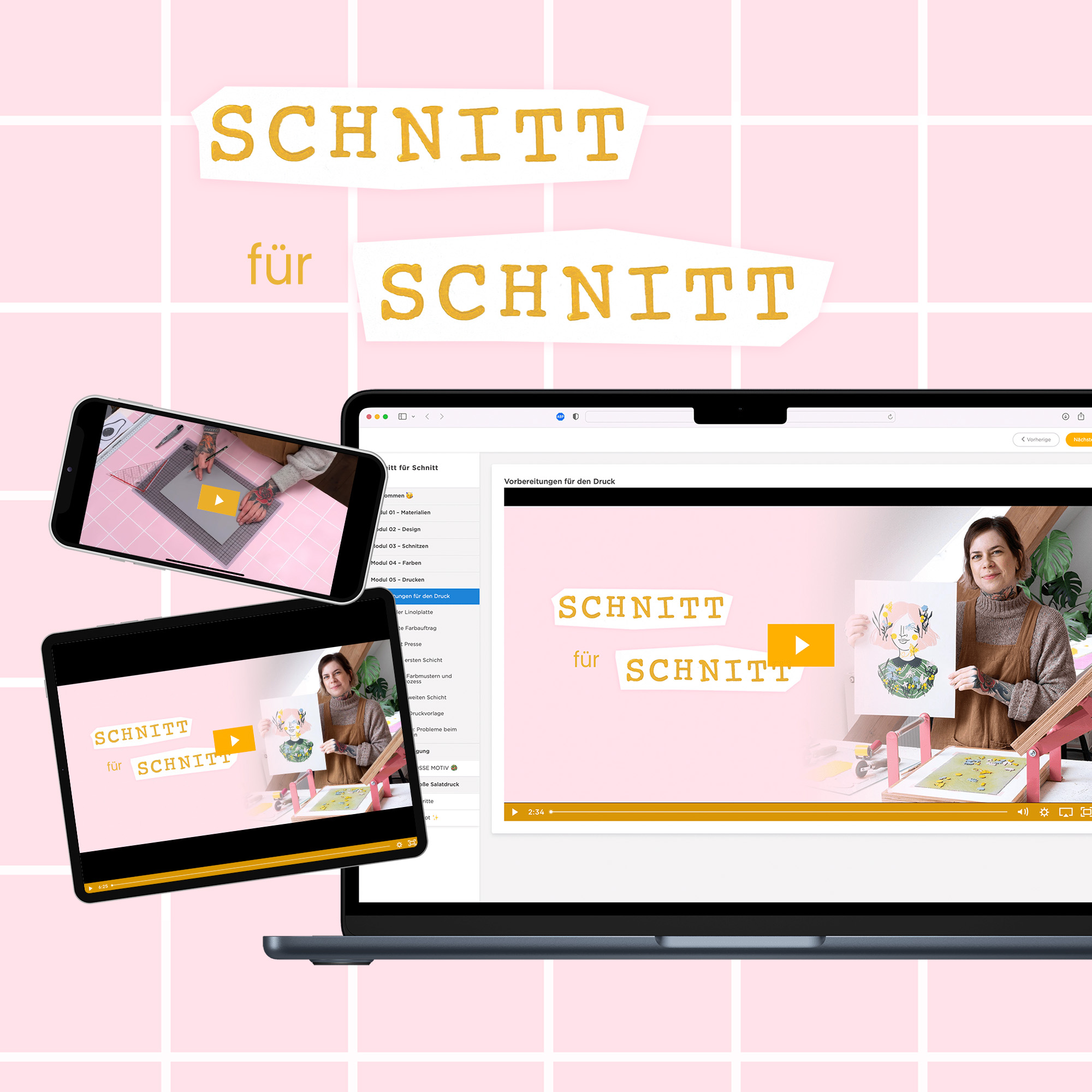 Herzlich willkommen zu "Schnitt für Schnitt" – dem Onlinekurs für deinen ersten bunten Linoldruck!