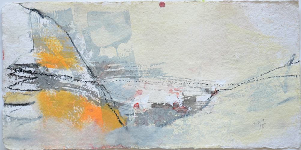 Original: Abstrakte Landschaft in Mischtechnik auf handgeschöpftem Bütten-Aquarellkarton 440 g/m2. Größe ca. 40 cm x 20 cm, 2015